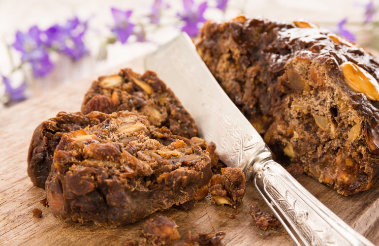 Uno dei dolci tipici del Campidano e di Cagliari, nonché di Pirri: Pani 'e Saba, pane dolce con uva passa e mosto cotto (saba)